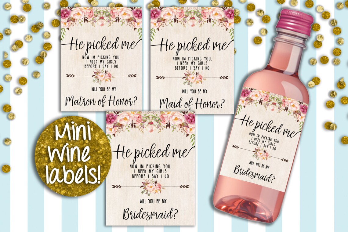 Mini Wine Labels & Mini Wine Bottle Labels - BottleYourBrand Choose a mini wine label design below to personalize -OR- start from scratch with the start now button above Sort By Show NEW Pop It When She Pops Glitter Mini Wine Labels $0.99 NEW Simple Bachelorette Text Mini Wine Labels $0.99 NEW Blush Pink Floral Baby Mini Wine Labels $0.99 NEW Natural Cotton Thank You Mini Wine Labels $0.99 NEW