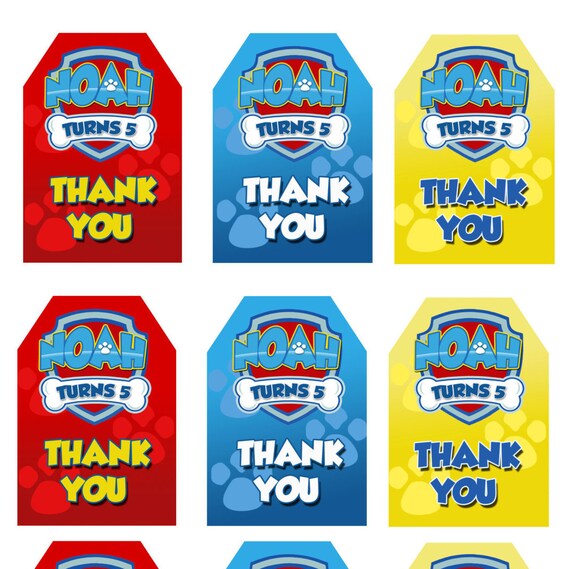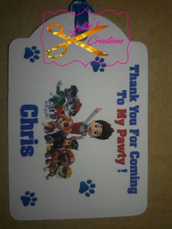 Paw Patrol Thank You Tags Paw Patrol Birthday Party Paw | Etsy Set of (7) 2" circle thank you tags. Each tag is laminated and hung with 12" ribbon folded in half for you to tie to your party favor. Please note that selecting priority shipping or express shipping does not speed up the processing time for the order, it only speeds up the shipping time. My orders are processed in the order they are received.