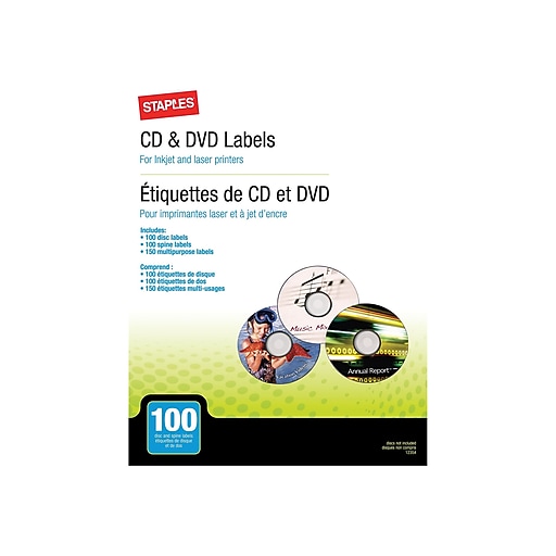 Staples Laser/Inkjet Media Labels, Matte White, 50 Disc, 75 ... 50 CD/DVD labels, 75 Multipurpose labels, 50 spine labels, 20 jewel case inserts, and 10 tray inserts Compatible with laser and inkjet printers for maximum flexibility Utilize Avery DesignPro software for professional-looking labels that stand out Would you like to give feedback on product content, images, or tell us about a lower price?