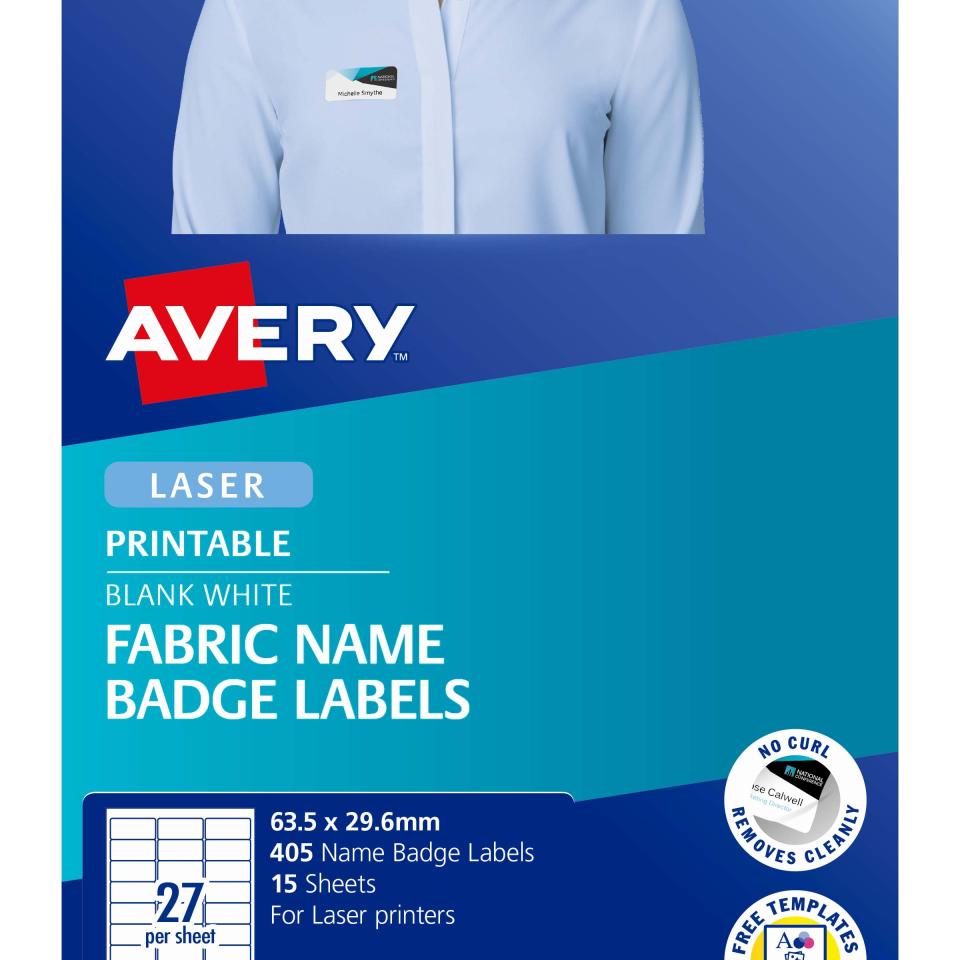 Name Badge Labels | Fabric & Card Name Labels | Avery Australia Fabric Name Badge Labels 959171. $82.18. 55.5 x 86.5 mm. 120 Badges / 15 Sheets. Laser.