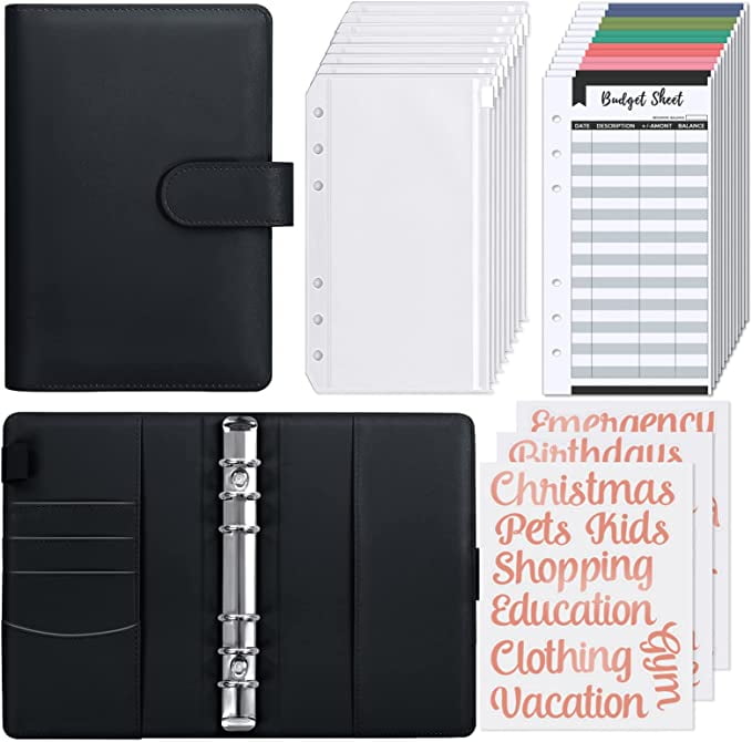 SKYDUE A6 Budget Binder,Money Organizer for Cash with 8pcs Zipper Envelopes,12pcs Expense Budget Sheets & 24 Rose Gold Sticky Labels,Money Saving ...
