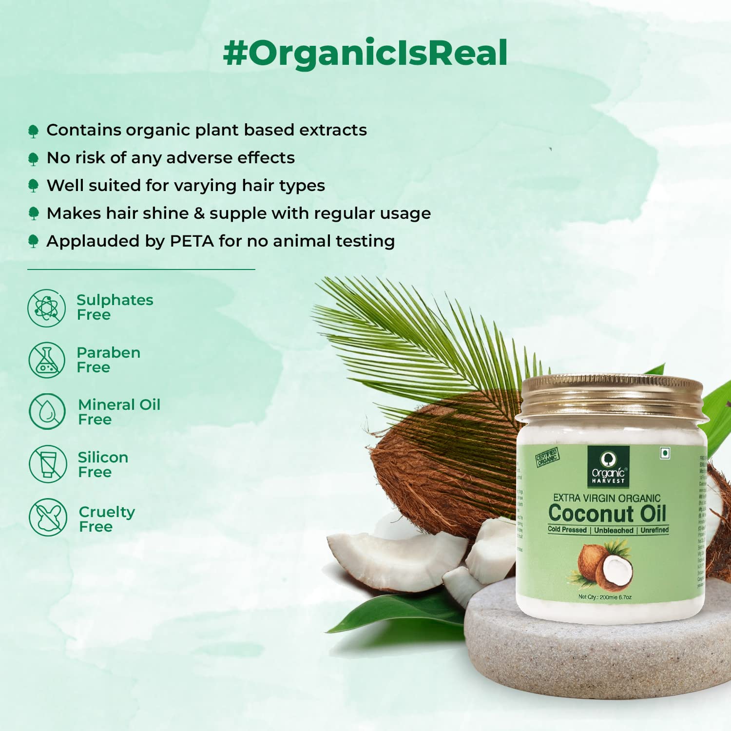 Organic Harvest Cold Pressed Extra Virgin Coconut Oil For Men & Women | Ideal For All Type Skin & Hair Growth | Unbleached & Unrefined | Sulphate & ...