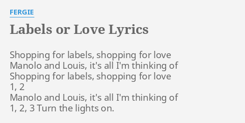Fergie - Labels or Love Lyrics | Genius Lyrics Shopping for labels, shopping for love One, two Manolo and Louis, it's all I'm thinking of One, two, three Turn the lights on [Verse 1] I already know what my addiction is (Addiction is) (I be...