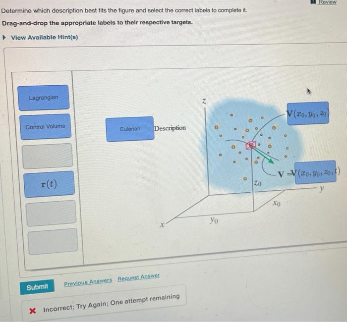 Which descriptions best fit the labels? X: kinetic energy... - en.ya.guru Which descriptions best fit the labels? X: kinetic energy Y: potential energy X: potential energy Y: kinetic energy X: mechanical energy Y: electrical energy X: electrical energy Y: mechanical energy. Answer by Guest. W-APE. For example, work W done to accelerate a positive charge from rest is positive and results from a loss in PE, or a ... Heat Flashcards | Quizlet Heat is the energy needed to change the temperature of 1 g of a substance by 1°C. Heat is the average kinetic energy of the particles of a substance. Heat is the total energy of a substance due to the movement of its particles. Heat is the energy that flows between two substances of different temperatures. Solved Review Determine which description best fits the | Chegg.com Expert Answer. 100% (2 ratings) Transcribed image text: Review Determine which description best fits the figure and select the correct labels to complete it. Drag-and-drop the appropriate labels to their respective targets. View Available Hint (s) Lagrangian V (co, yo,20 Control Volume Eulerian Description O 0 S o D O 0 V V (20, Yo, zo,t) O r ...